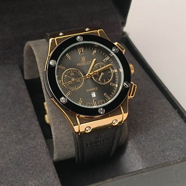ساعت مچی مردانه هابلوت با کیفیت عالی طرح سه موتور و دارای روزشمار، جنس بند دو لایه میباشد لایه زیری که با پست در تماس است از جنس رابر و نرم میباشد،و رویه یکار از جنس مخمل هست. برند هایلونگ روی بند و قفل ساعت حک شده. مناسب برای استفاده روزمره با استایل کلاسیک و اسپورت.موتور این ساعت قبل از ارسال 24 ساعت تست میشود همچنین از لحاظ ظاهری مورد بررسی قرار میگیرد و سپس ارسال میشود.پس با خیال راحت خرید کنید.