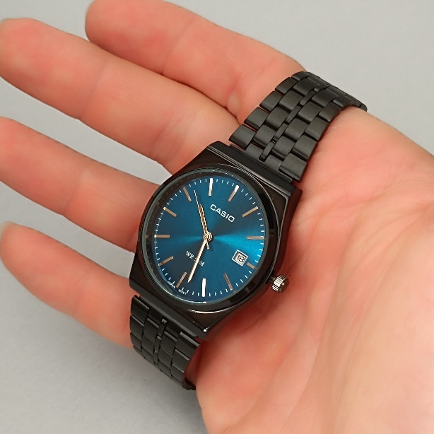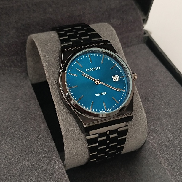 ساعت مچی مردانه کاسیو CASIO بند فلزی مشکی . صفحه آبی آن زیبایی ساعت را دوچندان میکند. این ساعت به طرح گادفادر معروف است. ویژگی این ساعت روزشمار دار بودن آن هست .با توجه به طراحی کلاسیک آن، برای استایل های اسپورت هم مناسب است.